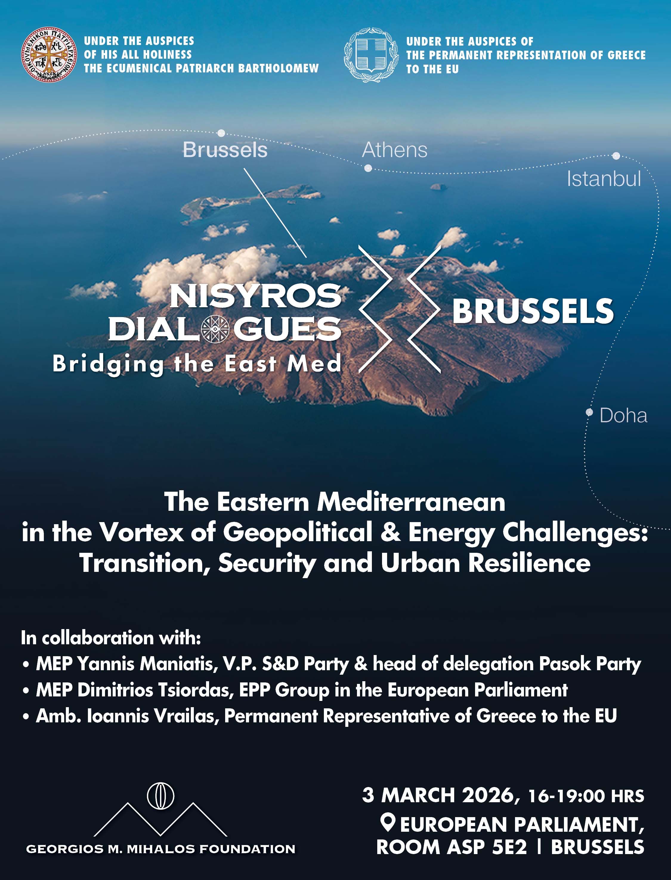 On March 3rd 2026, the «Nisyros Dialogues» will take place at the European Parliament in Brussels. They are transported to the heart of European institutional activity, where crucial policies and decisions are made for Europe and its role in the Eastern Mediterranean.